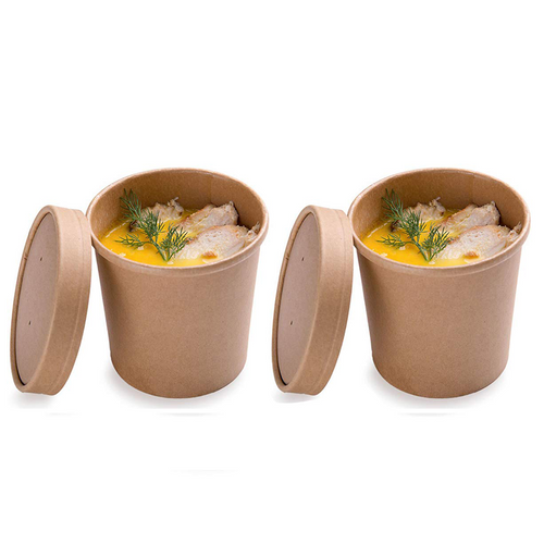 16OZ PAPER SOUP CUP & PLASTIC LID QUALITY 25 COUNT