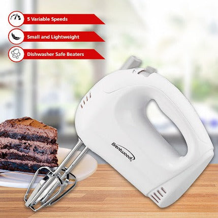 BRENTWOOD HAND MIXER WHITE 5 SPEED